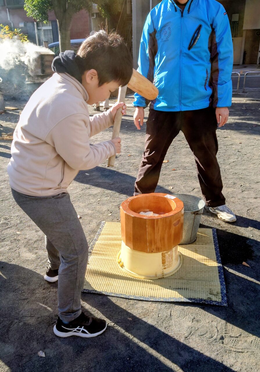 子ども会12/7(日)芦穂崎公園にて、中町会と合同の餅つきを実施しました。