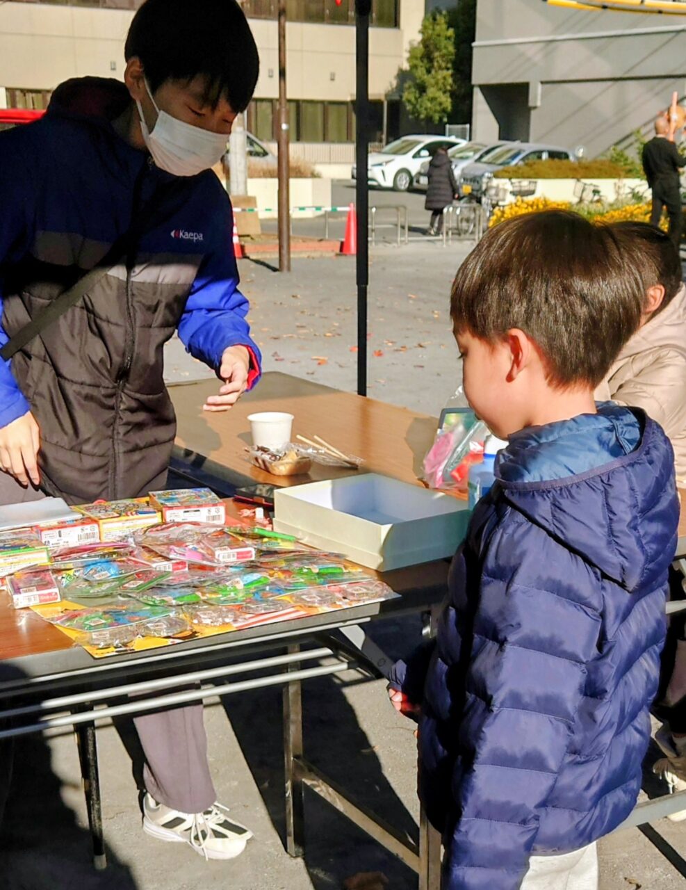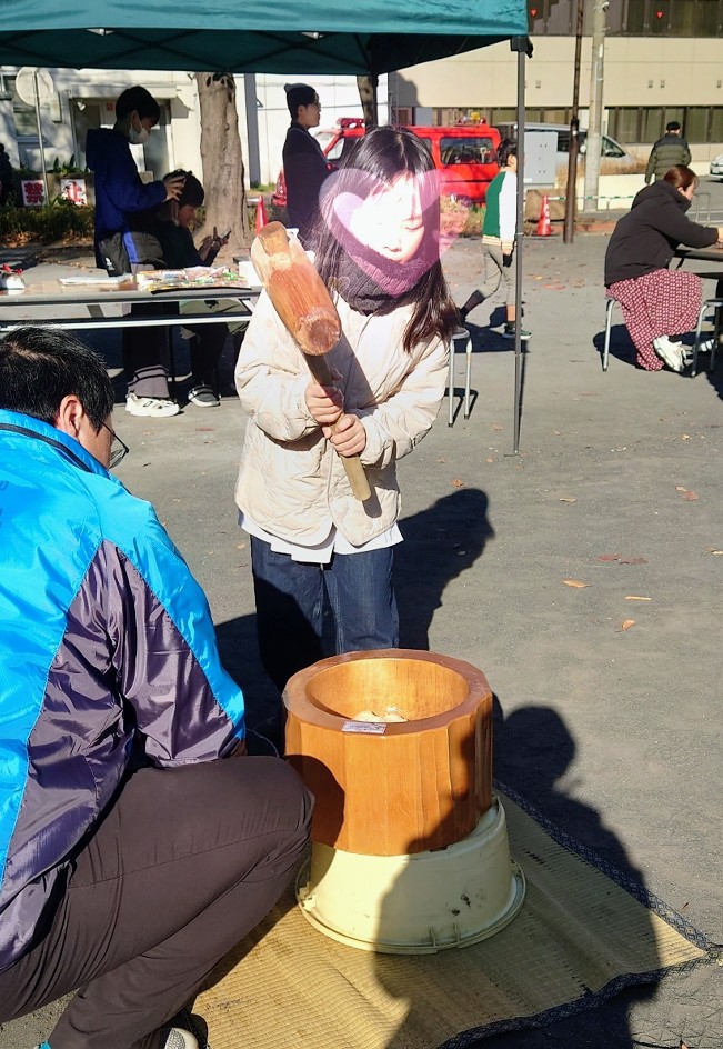 子ども会では足を運んでくれた子どもたちに餅つき体験のほか、くじ引きとお菓子のプレゼントも行いました。寒空の中、子どもたちの楽しむ姿が見られました!